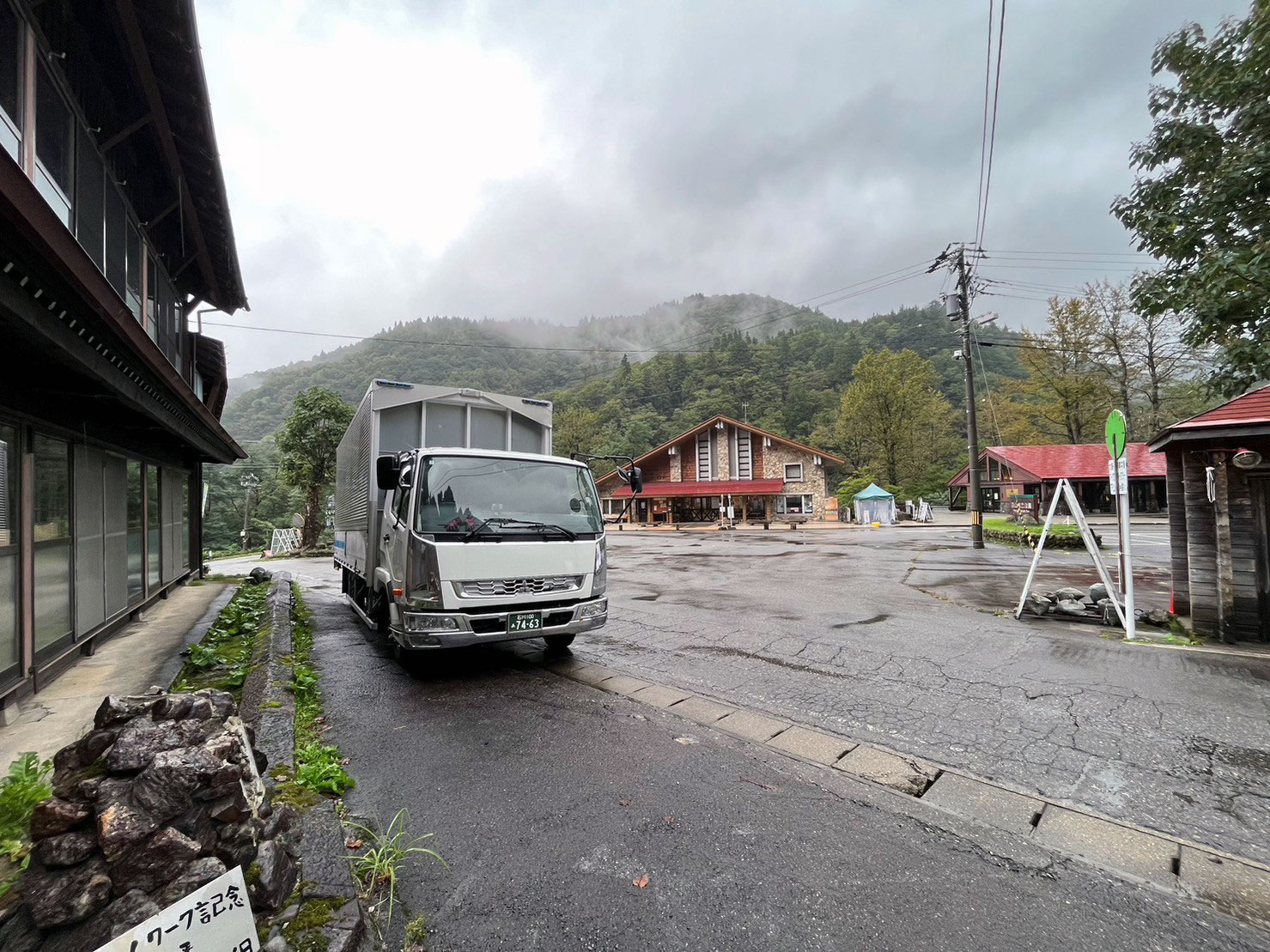 白山市の山奥まで配達。山の上の方は、すでに雪で白くなっていました。